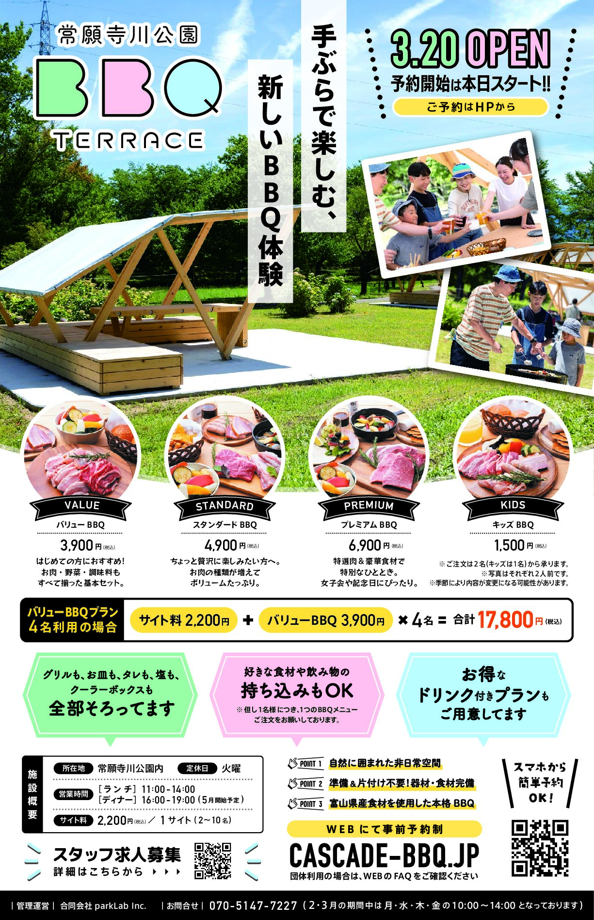 富山市街地から車で20分。自然豊かな公園の中にある、フォトジェニックなデッキサイトをそなえたBBQ施設です。