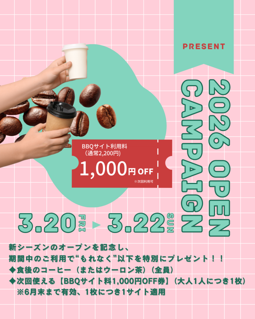 🎫次回使えるBBQサイト利用料1,000円OFF券